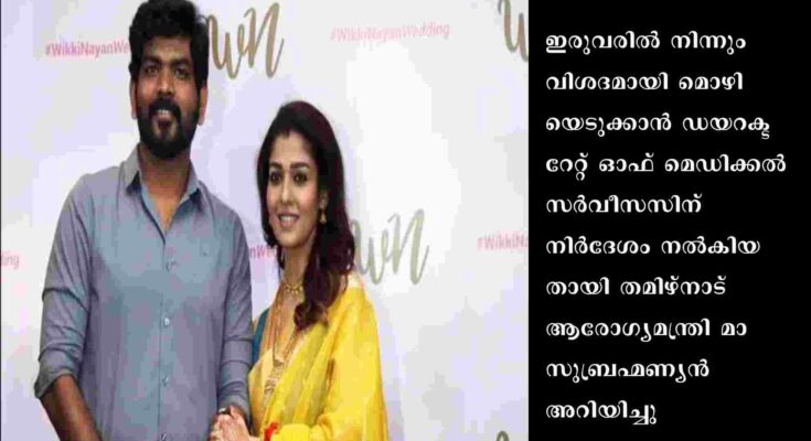 ചെന്നൈ: ചലച്ചിത്രതാരം നയന്താരയ്ക്കും ഭര്ത്താവും സംവിധായകനുമായ വിഘേ്നഷ് ശിവനും വാടക ഗര്ഭധാരണത്തിലൂടെ ഇരട്ടക്കുഞ്ഞുങ്ങള് പിറന്ന സംഭവത്തില് തമിഴ്നാട് ആരോഗ്യമന്ത്രാലയം അന്വേഷണം തുടങ്ങി. ഇരുവരില് നിന്നും വിശദമായി മൊഴിയെടുക്കാന് ഡയറക്ടറേറ്റ് ഓഫ് മെഡിക്കല് സര്വീസസിന് നിര്ദേശം നല്കിയതായി തമിഴ്നാട് ആരോഗ്യമന്ത്രി മാ സുബ്രഹ്മണ്യന് അറിയിച്ചു.
