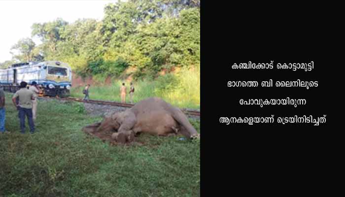 പാലക്കാട്: കഞ്ചിക്കോട് ട്രെയിനിടിച്ച് കാട്ടാന ചരിഞ്ഞു. കഞ്ചിക്കോട് കൊട്ടാമുട്ടി ഭാഗത്തെ ബി ലൈനിലൂടെ പോവുകയായിരുന്ന ആനകളെയാണ് ട്രെയിനിടിച്ചത്. ട്രെയിൻ ഗതാഗതം തടസ്സപെട്ടിട്ടില്ല. എന്നാല്‍ കാട്ടാനകൂട്ടം സംഭവ സ്ഥലത്തിന് സമീപത്ത് നിന്നും മാറാത്തതിനാൽ വനം വകുപ്പ് ഉദ്യോഗസ്ഥർക്ക് സ്ഥലത്ത് എത്താൻ കഴിഞ്ഞിട്ടില്ല. കന്യാകുമാരി അസം എക്സ്പ്രസാണ് കാട്ടാനക്കൂട്ടത്തെ ഇടിച്ചത്.