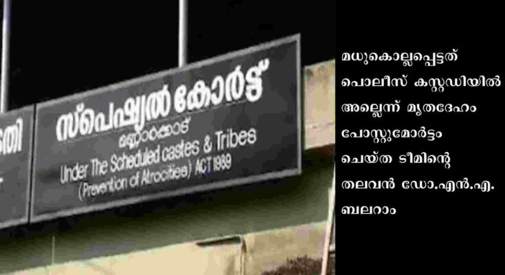 മണ്ണാർക്കാട് : മധുകൊല്ലപ്പെട്ടത് പൊലീസ് കസ്റ്റഡിയിൽ അല്ലെന്ന് മൃതദേഹം പോസ്റ്റുമോർട്ടം ചെയ്ത ടീമിന്റെ തലവൻ ഡോ.എൻ.എ. ബലറാം. മധുവിന്റെ ശരീരത്തിൽ കണ്ടെത്തിയ പരിക്കുകൾക്ക് കസ്റ്റഡിയിൽ വച്ച് പീഡിപ്പിക്കപ്പെട്ടതിന്റെ പ്രകൃതമായിരുന്നില്ലെന്ന് അദ്ദേഹം മണ്ണാർക്കാട് എസ് സി എസ്ടി കോടതിയിൽ മൊഴി നൽകി. സംഭവകാലത്ത് തൃശ്ശൂർ മെഡിക്കൽ കോളേജിലെ ഫൊറൻസിക് മെഡിസിൻ വിഭാഗം മേധാവിയായിരുന്നു അദ്ദേഹം.