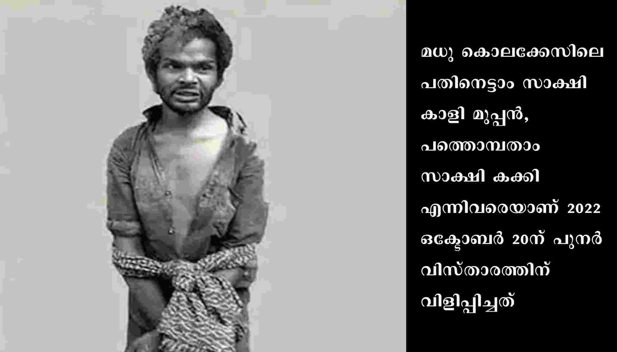 ഒക്ടോബർ 20നാണ് കക്കിയുടേയും കാളി മൂപ്പന്റെയും പുനർ വിസ്താരം കോടതി ക്രമീകരിച്ചിരുന്നത്. ഒക്ടോബർ 19ന് രാവിലെ മുതൽ ഇരുവരേയും നാട്ടിൽ നിന്ന് കാണാതായെന്ന് പ്രതിഭാഗം പറഞ്ഞു. വീട്ടിനടുത്തു നിന്ന് ഒരു ഇന്നോവയിൽ കക്കി ആറുമണിയോടെ അട്ടപ്പാടിയിൽ നിന്ന് പോയി. പിന്നാലെ, മണ്ണാർക്കാട്ടെ ഒരു ബാറിൽ വാഹനം എത്തി. അവിടെ കയറിയ ശേഷം, പാലക്കാടേക്ക് പോകുന്ന വഴിക്ക് നെല്ലിപ്പുഴയിൽ വച്ച് കാളി മൂപ്പനും കാറിൽ കയറി. നേരെ പോയത് മധുകേസിലെ സ്പെഷ്യൽ പ്രോസിക്യൂട്ടറായ രാജേഷ് എം മേനോൻ്റെ ഓഫീസിലേക്കല്ലേ എന്നും പ്രതിഭാഗം വിശദമായി ചോദിച്ചു. അതെ എന്നായിരുന്നു കക്കിയുടെ മറുപടി. അവിടെ പോയപ്പോൾ എന്താണ് പറഞ്ഞതെന്ന് പ്രതിഭാഗം അഭിഭാഷകനായ ബാബു കാർത്തികേയൻ ചോദിച്ചു.