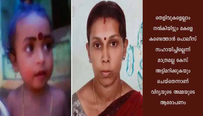 വിദ്യയെയും കുഞ്ഞിനെയും കാണാതായ കേസ് പത്ത് മാസം കഴിഞ്ഞപ്പോൾ മാറനെല്ലൂര് പൊലീസ് അണ്നോണ് ആക്കി പൂഴ്ത്തി വെച്ചു. മകളെ കാണാതായ ദുഃഖത്തില് ജയചന്ദ്രൻ കഴിഞ്ഞ വര്ഷം തൂങ്ങി മരിച്ചു. വിദ്യയെയും ഗൗരിയെയും കൊണ്ടുപോയ പങ്കാളി തിരിച്ചെത്തിയിട്ടും വിദ്യയും ഗൗരി മോളും എവിടെയാണ് എന്ന ചോദ്യമാണ് ബാക്കി. ഇവരെ കൊണ്ട് പോയ പങ്കാളി മാഹിന് കണ്ണിനെക്കുറിച്ച് എന്ത് കൊണ്ട് പൊലീസ് കൂടുതൽ അന്വേഷിക്കുന്നില്ല.