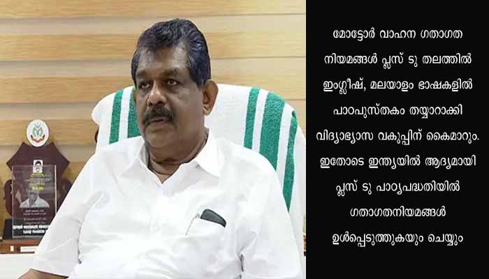 സുരക്ഷാ മിത്ര പദ്ധതി പ്രകാരം വാഹനങ്ങളുടെ സഞ്ചാരപാത മോട്ടോര് വാഹന വകുപ്പ് പൊലീസിന് നല്കും. മോട്ടോര് വാഹന ഗതാഗത നിയമങ്ങള് പ്ലസ് ടു തലത്തില് ഇംഗ്ലീഷ്, മലയാളം ഭാഷകളില് പാഠപുസ്തകം തയ്യാറാക്കി വിദ്യാഭ്യാസ വകുപ്പിന് കൈമാറും. ഇതോടെ ഇന്ത്യയില് ആദ്യമായി പ്ലസ് ടു പാഠ്യപദ്ധതിയില് ഗതാഗതനിയമങ്ങള് ഉള്പ്പെടുത്തുകയും ഇതുവഴി പ്ലസ് ടു കോഴ്സ് പാസാകുന്നതിനോടൊപ്പം ലേണേഴ്സ് ടെസ്റ്റിന് പ്രത്യേക അപേക്ഷ നല്കേണ്ടതില്ലെന്നും 45 ശതമാനത്തിന് മുകളില് വൈകല്യമുളള ഭിന്നശേഷിക്കാര്ക്ക് യാത്രാ സൗജന്യം നല്കുമെന്നും മന്ത്രി അറിയിച്ചു.