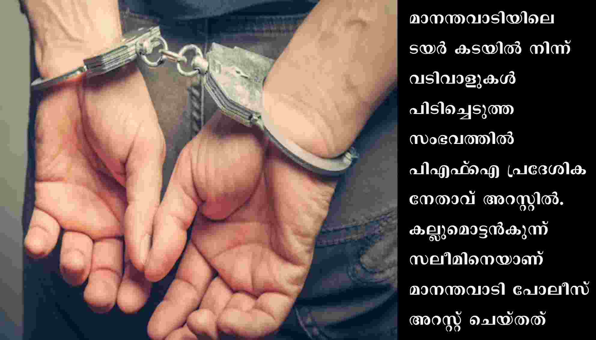 വയനാട്: മാനന്തവാടിയിലെ ടയർ കടയിൽ നിന്ന് വടിവാളുകൾ പിടിച്ചെടുത്ത സംഭവത്തിൽ പിഎഫ്ഐ പ്രദേശിക നേതാവ് അറസ്റ്റിൽ.കല്ലുമൊട്ടൻകുന്ന് സലീമിനെയാണ് മാനന്തവാടി പോലീസ് അറസ്റ്റ് ചെയ്തത്. ഇയാളുടെ കടയിൽ നിന്നുമാണ് 2022 സെപ്തംബറിൽ നാല് വടിവാളുകൾ കണ്ടെടുത്തത്. തുടർന്ന് ഒളിവിലായിരുന്ന സലീം ഇന്ന് പോലീസിന് മുന്നിൽ കീഴടങ്ങുകയായിരുന്നു. പ്രതിയെ ടയർ കടയിലും വീട്ടിലുമെത്തിച്ച് തെളിവെടുപ്പ് നടത്തി.