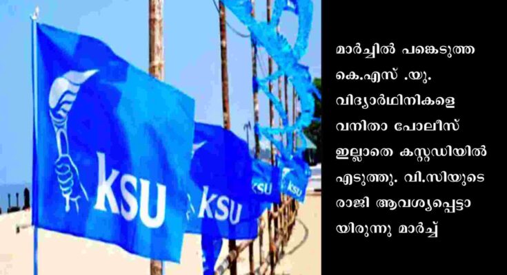 മാര്ച്ച് വി.സിയുടെ വീടിന് മുന്നില് തടഞ്ഞതോടെ പോലീസും പ്രവര്ത്തകരും തമ്മില് ഉന്തും തള്ളും ഉണ്ടായി. മാര്ച്ചില് പങ്കെടുത്ത കെ.എസ്.യു. പ്രവര്ത്തകരായ കാവ്യ, ദേവനന്ദ എന്നീ വിദ്യാര്ഥിനികളെ വനിതാ പോലീസിന്റെ അസാന്നിധ്യത്തിലാണ് കസ്റ്റഡിയിലെടുത്തത്. വഴിയാത്രക്കാരിയായ സ്ത്രീയെ കൊണ്ടാണ് പെണ്കുട്ടികളെ ബലംപ്രയോഗിച്ച് കസ്റ്റഡിയിലെടുത്തത്. കണ്ണൂര് ടൗണ് സി.ഐയാണ് പെണ്കുട്ടികളെ കസ്റ്റഡിയിലെടുക്കാന് വഴിയാത്രക്കാരിയായ സ്ത്രീക്ക് നിര്ദേശം നല്കിയത്. ദൃശ്യങ്ങള് മൊെബെലില് ചിത്രീകരിക്കുന്നതു തടയാനും ശ്രമം ഉണ്ടായെന്ന് പരാതിയുണ്ട്. ജയ്ഹിന്ദ് അസിസ്റ്റന്റ് ക്യാമറാമാന് മനേഷിനെ െലെവായി സമരം ചിത്രീകരിക്കുന്നതിനിടെ പോലീസ് കസ്റ്റഡിയിലെടുക്കുകയും മൊെബെല് പിടിച്ചു വാങ്ങുകയായിരുന്നു. കണ്ണൂര് സി.ഐ. ബിനുമോഹന്റെ നേതൃത്വത്തിലാണ് പോലീസ് അതിക്രമം നടത്തിയതെന്നാണ് പരാതി.
