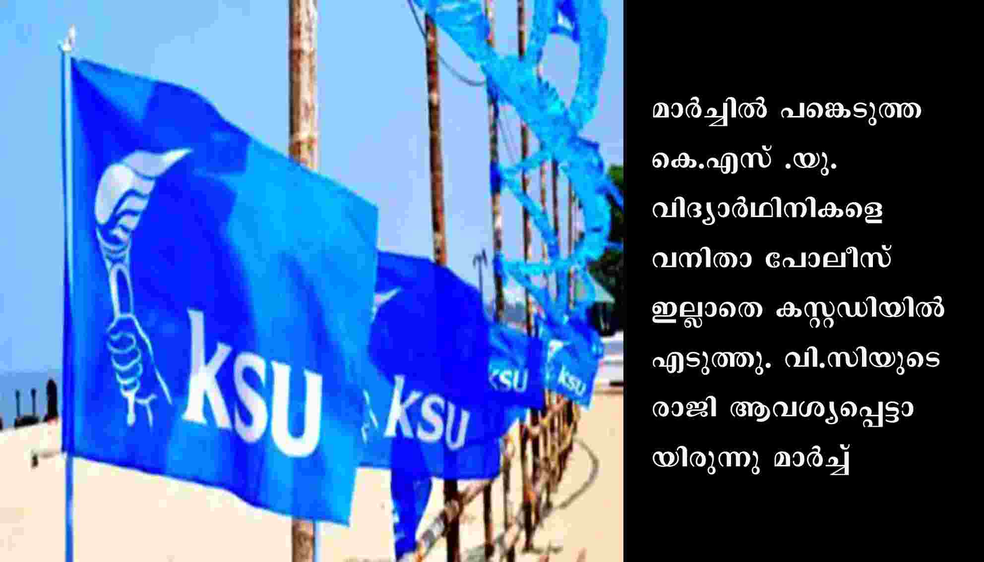 മാര്ച്ച് വി.സിയുടെ വീടിന് മുന്നില് തടഞ്ഞതോടെ പോലീസും പ്രവര്ത്തകരും തമ്മില് ഉന്തും തള്ളും ഉണ്ടായി. മാര്ച്ചില് പങ്കെടുത്ത കെ.എസ്.യു. പ്രവര്ത്തകരായ കാവ്യ, ദേവനന്ദ എന്നീ വിദ്യാര്ഥിനികളെ വനിതാ പോലീസിന്റെ അസാന്നിധ്യത്തിലാണ് കസ്റ്റഡിയിലെടുത്തത്. വഴിയാത്രക്കാരിയായ സ്ത്രീയെ കൊണ്ടാണ് പെണ്കുട്ടികളെ ബലംപ്രയോഗിച്ച് കസ്റ്റഡിയിലെടുത്തത്. കണ്ണൂര് ടൗണ് സി.ഐയാണ് പെണ്കുട്ടികളെ കസ്റ്റഡിയിലെടുക്കാന് വഴിയാത്രക്കാരിയായ സ്ത്രീക്ക് നിര്ദേശം നല്കിയത്. ദൃശ്യങ്ങള് മൊെബെലില് ചിത്രീകരിക്കുന്നതു തടയാനും ശ്രമം ഉണ്ടായെന്ന് പരാതിയുണ്ട്. ജയ്ഹിന്ദ് അസിസ്റ്റന്റ് ക്യാമറാമാന് മനേഷിനെ െലെവായി സമരം ചിത്രീകരിക്കുന്നതിനിടെ പോലീസ് കസ്റ്റഡിയിലെടുക്കുകയും മൊെബെല് പിടിച്ചു വാങ്ങുകയായിരുന്നു. കണ്ണൂര് സി.ഐ. ബിനുമോഹന്റെ നേതൃത്വത്തിലാണ് പോലീസ് അതിക്രമം നടത്തിയതെന്നാണ് പരാതി.
