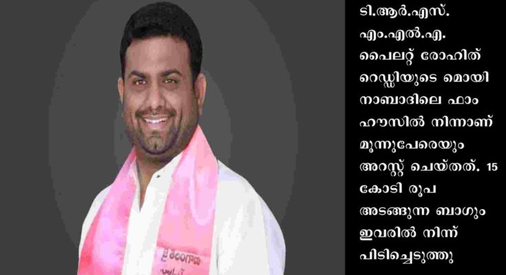 ടി.ആര്.എസ്. എം.എല്.എ. പൈലറ്റ് രോഹിത് റെഡ്ഡിയുടെ മൊയിനാബാദിലെ ഫാംഹൗസില് നിന്നാണ് മൂന്നുപേരെയും അറസ്റ്റ് ചെയ്തത്. 15 കോടി രൂപ അടങ്ങുന്ന ബാഗും ഇവരില് നിന്ന് പിടിച്ചെടുത്തു. റെഡ്ഡി തന്നെയാണ് ഇടപാടിനെക്കുറിച്ച് വിവരം നല്കിയതെന്നും പോലീസ് പറയുന്നു.