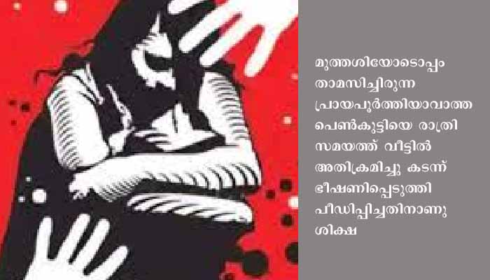 2016 നവംബര് 18 നാണു കേസിനാസ്പദമായ സംഭവം നടന്നത്. ചൈല്ഡ് ലൈന് പ്രവര്ത്തകരുടെ കൗണ്സലിങ്ങിലാണ് പീഡന വിവരം പുറത്തു വന്നത്. വിചാരണക്കിടെ ഒളിവില് പോയ പ്രതിയുടെ ജാമ്യം കോടതി നേരത്തേ റദ്ദാക്കിയിരുന്നു. പ്രോസിക്യൂഷനായി സ്പെഷല് പബ്ലിക് പ്രോസിക്യൂട്ടര് പി.ബി. വാഹിദ ഹാജരായി.