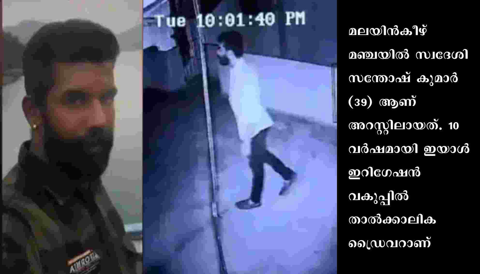 കുറവൻകോണത്തെ വീട്ടിൽ അതിക്രമം കാണിച്ച കേസിൽ അറസ്റ്റ്. മലയിൻകീഴ് മഞ്ചയിൽ സ്വദേശി സന്തോഷ് കുമാർ (39) ആണ് അറസ്റ്റിലായത്. 10 വർഷമായി ഇയാൾ ഇറിഗേഷൻ വകുപ്പിൽ താൽക്കാലിക ഡ്രൈവറാണ്. നിലവിൽ മന്ത്രി റോഷി അഗസ്റ്റിന്റെ പ്രൈവറ്റ് സെക്രട്ടറിയുടെ ഡ്രൈവറാണ് സന്തോഷ് കുമാർ. അതിക്രമിച്ചു കയറൽ, മോഷണ ശ്രമം എന്നിവ കുറ്റങ്ങൾ ചുമത്തിയാണ് ഇയാളെ അറസ്റ്റ് ചെയ്തിരിക്കുന്നത്.
