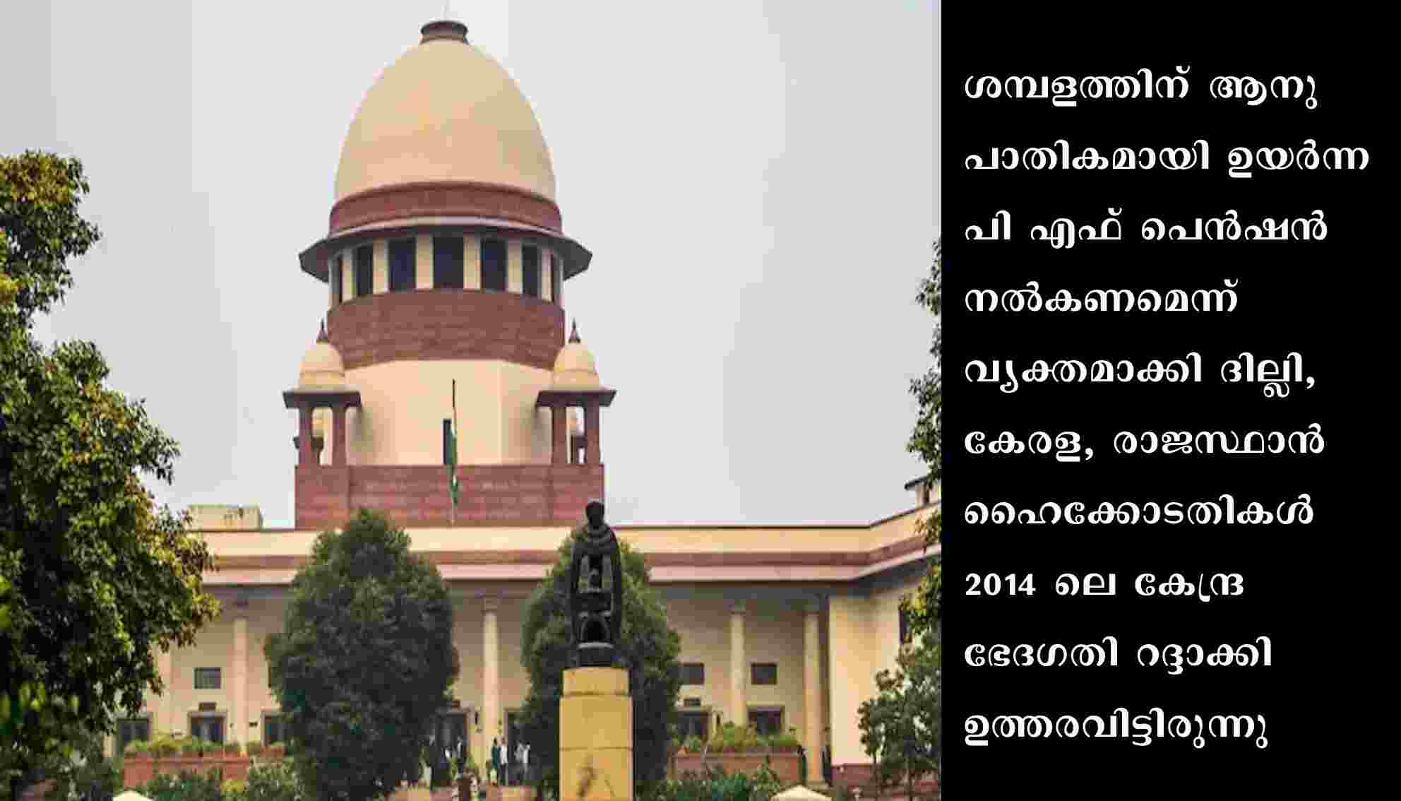 എംപ്ലോയ്മെന്റ് പെൻഷൻ സ്കീമീൽ 2014ലെ കേന്ദ്രഭേദഗതിയാണ് കേസിന് ആധാരം. പിഎഫിൽ നിന്ന് പെൻഷൻ സ്കീമിലേക്ക് മാറ്റുന്ന തുകയ്ക്ക് അടിസ്ഥാന ശമ്പളത്തിന് 15,000 രൂപയുടെ മേൽപ്പരിധി നിശ്ചയിച്ചിരുന്നത് ഹൈക്കോടതി റദ്ദാക്കിയിരുന്നു. ഇതോടെ 15,000 രൂപയിലേറെ ശമ്പളമുള്ളവർക്ക് യഥാർഥ ശമ്പളത്തിന് ആനുപാതികമായ തുക പെൻഷൻ ഫണ്ടിലേക്ക് മാറ്റാൻ അവസരം കിട്ടി. പെൻഷൻ പദ്ധതിയിൽ ചേരുന്നതിന് സമയ പരിധി ഇല്ലെന്ന് കേരള ഹൈക്കോടതി വിധിച്ചു. അവസാനത്തെ 60 മാസത്തെ ശമ്പളം അടിസ്ഥാനമാക്കി പെൻഷൻ കണക്കാക്കുന്ന കേന്ദ്ര നിയമഭേദഗതിയിലെ രീതി ഹൈക്കോടതി റദ്ദാക്കുകയും ചെയ്തു.