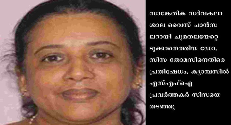 കൊച്ചി: സാങ്കേതിക സര്വകലാശാല വൈസ് ചാന്സലറായി ചുമതലയേറ്റെടുക്കാനെത്തിയ ഡോ. സിസ തോമസിനെതിരെ പ്രതിഷേധം. ക്യാമ്പസില് എസ്എഫ്ഐ പ്രവര്ത്തകര് സിസയെ തടഞ്ഞു. തുടര്ന്ന് പോലീസ് ഇടപെട്ടാണ് ഇവരെ ഓഫിസിനുള്ളിലേക്ക് കടത്തിയത്.പോലീസ് സംരക്ഷണത്തിലാണ് സിസ കെടിയു ക്യാമ്പസിലേക്ക് എത്തിയത്. കാറിലെത്തിയ സിസ തോമസിനെ ഗേറ്റില് വെച്ച് എസ്എഫ്ഐ പ്രവര്ത്തകര് തടഞ്ഞു.