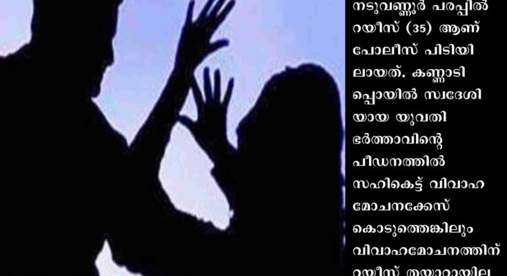 ബാലുശേരി: വിവാഹമോചനത്തിനു കേസ് കൊടുത്ത യുവതിയുടെ വീട് ആക്രമിക്കാന്‍ ശ്രമിച്ച ഭര്‍ത്താവിനെ നാട്ടുകാര്‍ പിടികൂടി പോലീസില്‍ ഏല്‍പിച്ചു. നടുവണ്ണൂര്‍ പരപ്പില്‍ റയീസ് (35) ആണ് പോലീസ് പിടിയിലായത്. കണ്ണാടിപ്പൊയില്‍ സ്വദേശിയായ യുവതി ഭര്‍ത്താവിന്റെ പീഡനത്തില്‍ സഹികെട്ട് വിവാഹ മോചനക്കേസ് കൊടുത്തെങ്കിലും വിവാഹമോചനത്തിന് റയീസ് തയാറായില്ല.പലപ്പോഴായി വീട്ടിലെത്തി നിരന്തരമായി യുവതിയെ ആക്രമിക്കാറുണ്ടെന്നും വീട്ടില്‍ കയറരുതെന്ന പ്രൊട്ടക്ഷന്‍ ഓര്‍ഡര്‍ ലംഘിച്ച് വീട്ടിലെത്തി അക്രമം കാണിക്കാറുണ്ടെന്നും ബന്ധുക്കള്‍ പറയുന്നു.