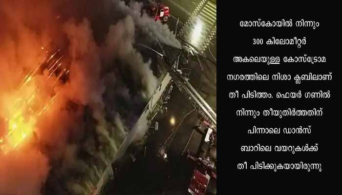 23 വയസുകാരനായ യുവാവ് ഡാന്സ് ബാറില് ഒരു സ്ത്രീയുമായി സമയം ചെലവഴിക്കുകയായിരുന്നു. ഇതിനിടെ ഇയാള് സ്ത്രീയ്ക്കായി കുറച്ച് പൂക്കള് ആവശ്യപ്പെട്ടു. തുടര്ന്ന് ഡാന്സ് ഫ്ലോറില് ചാടിക്കയറിയ ഇയാള് മുകളിലേക്ക് വെടിയുതിര്ക്കുകയായിരുന്നെന്ന് അന്വേഷണ ഉദ്യോഗസ്ഥരെ ഉദ്ധരിച്ച് പ്രാദേശിക മാധ്യമങ്ങള് റിപ്പോര്ട്ട് ചെയ്തു. ഒറ്റ നിലക്കെട്ടിടം മുഴുവനായും തീ വിഴുന്ന ദൃശ്യങ്ങള് സര്ക്കാര് നിയന്ത്രിത ടെലിവിഷനില് പ്രക്ഷേപണം ചെയ്തു. ബാറില് സുരക്ഷാമാനദണ്ഡങ്ങള് പാലിച്ചിരുന്നില്ലെന്നും ടെലിവിഷന് റിപ്പോര്ട്ടില് പറയുന്നു. ഒരു പ്രാദേശിക രാഷ്ട്രീയക്കാരന്റെ ഉടമസ്ഥതയിലാണ് ക്ലബ്ബെന്ന് ബിബിസി റഷ്യ റിപ്പോര്ട്ട് ചെയ്തു. 2009 ല് റഷ്യയിലെ പ്രേം നഗരത്തിലെ നിശാ ക്ലബ്ബിലുണ്ടായ തീ പിടിത്തത്തില് 159 പേരാണ് മരണത്തിന് കീഴടങ്ങിയത്.