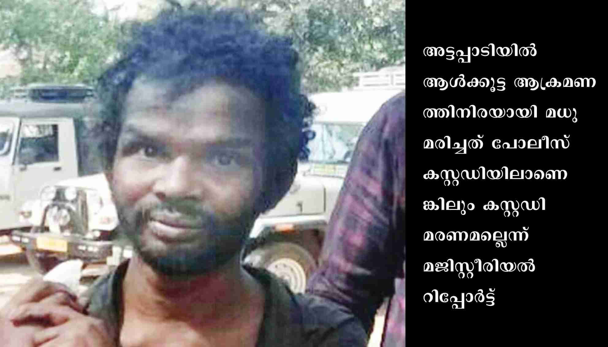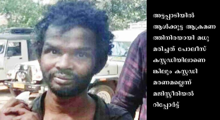 പാലക്കാട്: അട്ടപ്പാടിയിൽ ആൾക്കൂട്ട ആക്രമണത്തിനിരയായി മധു മരിച്ചത് പോലീസ് കസ്റ്റഡിയിലാണെങ്കിലും കസ്റ്റഡി മരണമല്ലെന്ന് മജിസ്റ്റീരിയൽ റിപ്പോർട്ട്. കസ്റ്റഡിയിൽ വെച്ച് മധുവിന് മർദ്ദനമേറ്റതായി തെളിവില്ലെന്ന് റിപ്പോർട്ടിൽ പറയുന്നു.