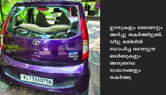 വീട്ടു മുറ്റത്ത് നിര്‍ത്തിയിട്ട കാറുകള്‍ തകര്‍ത്തു