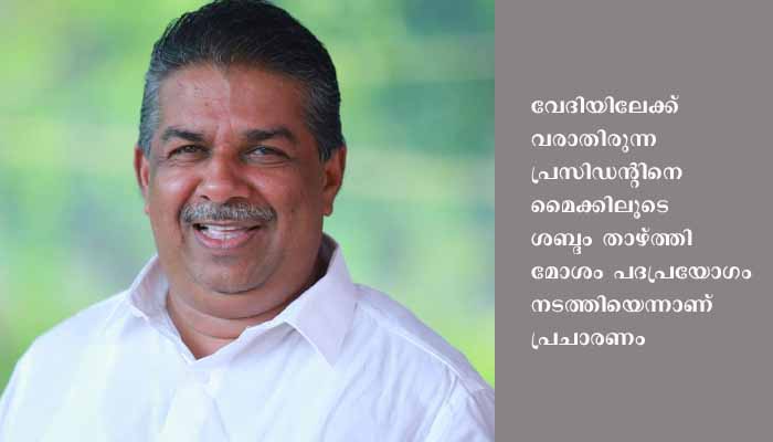 ചെങ്ങന്നൂര്: പാണ്ടനാട് നടത്തിയ ചാമ്പ്യന്സ് ബോട്ട് ലീഗ് വള്ളംകളി മത്സരത്തിന്റെ സമാപന ചടങ്ങില് വനിതാ ഗ്രാമപഞ്ചായത്ത് പ്രസിഡന്റിനെതിരേ സജി ചെറിയാന് എം.എല്.എ. മോശം പദപ്രയോഗം നടത്തിയെന്ന് പ്രചരണം.