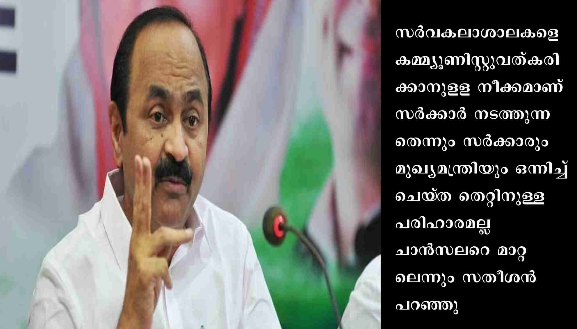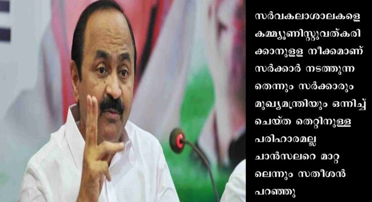 ‘ഗവർണറെ ചാൻസലർ പദവിയിൽ നിന്ന് മാറ്റാനുള്ള നീക്കം അംഗീകരിക്കില്ല’ പ്രതിപക്ഷ നേതാവ് വി.ഡി.സതീശൻ