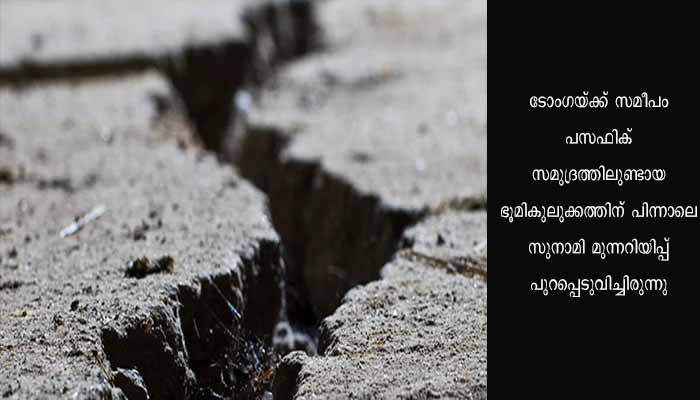 11/11/22 വെള്ളിയാഴ്ച ടോംഗയ്ക്ക് സമീപം പസഫിക് സമുദ്രത്തിലുണ്ടായ ഭൂമികുലുക്കത്തിന് പിന്നാലെ സുനാമി മുന്നറിയിപ്പ് പുറപ്പെടുവിച്ചിരുന്നു. 7.5 തീവ്രതയാണ്11/11/22 വെള്ളിയാഴ്ചത്തെ ഭൂമികുലുക്കത്തിൽ രേഖപ്പെടുത്തിയത്. തുടർന്ന് 5.1 തീവ്രതയുടെ തുടർചലനവും രേഖപ്പെടുത്തിയിരുന്നു.