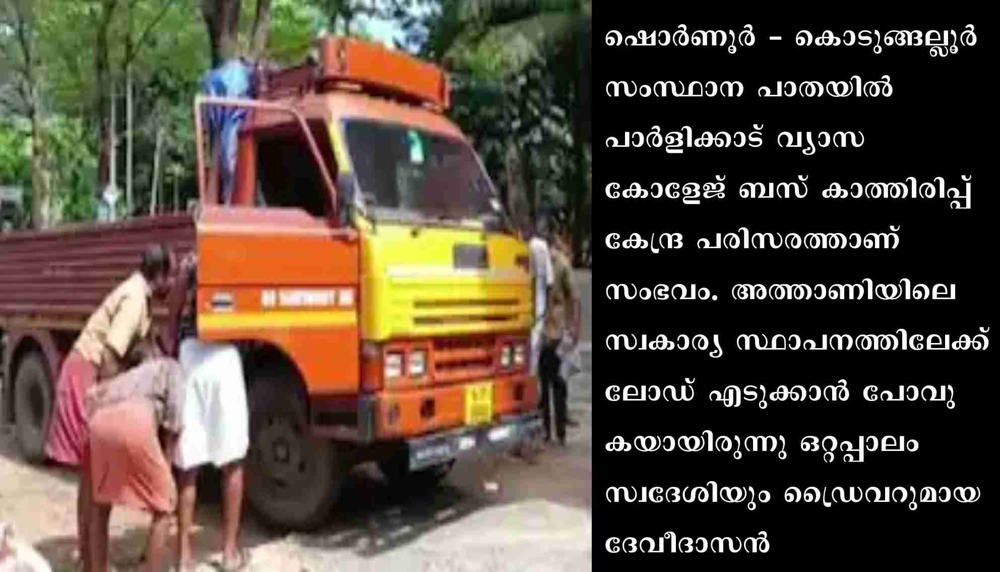 ഷൊർണൂർ – കൊടുങ്ങല്ലൂർ സംസ്ഥാന പാതയിൽ പാർളിക്കാട് വ്യാസ കോളേജ് ബസ് കാത്തിരിപ്പ് കേന്ദ്ര പരിസരത്താണ് സംഭവം. അത്താണിയിലെ സ്വകാര്യ സ്ഥാപനത്തിലേക്ക് ലോഡ് എടുക്കാൻ പോവുകയായിരുന്നു ഒറ്റപ്പാലം സ്വദേശിയും ഡ്രൈവറുമായ ദേവീദാസൻ. വണ്ടിയെടുത്ത് മുപ്പത് കിലോമീറ്ററിലേറെ സഞ്ചരിച്ചു കാണും. ഡ്രൈവിംഗ് സീറ്റിനരികിൽ വലതു വശത്തു നിന്നും പാമ്പ് തല പൊക്കിയതോടെ ദാസൻ ഭീതിയിലായി. വല്ലവിധേനയും വാഹനം സഡൻ ബ്രേക്കിട്ട് ചവിട്ടി നിർത്തി ചാടിയിറങ്ങി രക്ഷതേടുകയായിരുന്നു.