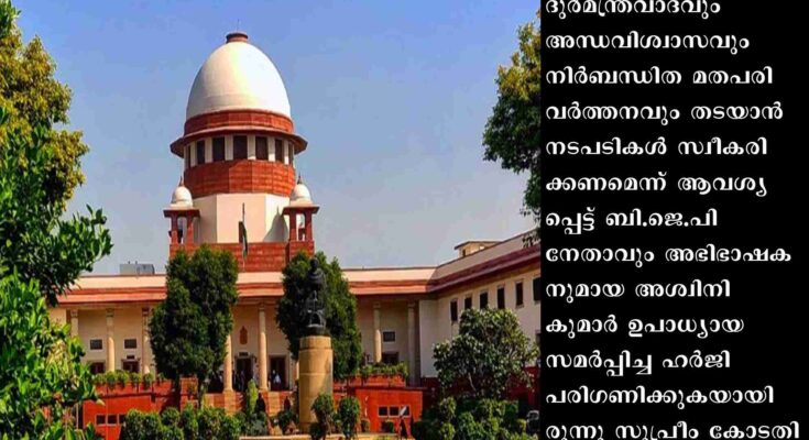 ദുർമന്ത്രവാദവും അന്ധവിശ്വാസവും നിർബന്ധിത മതപരിവർത്തനവും തടയാൻ നടപടികൾ സ്വീകരിക്കണമെന്ന് ആവശ്യപ്പെട്ട് ബി.ജെ.പി നേതാവും അഭിഭാഷകനുമായ അശ്വിനി കുമാർ ഉപാധ്യായ സമർപ്പിച്ച ഹർജി പരിഗണിക്കുകയായിരുന്നു സുപ്രീം കോടതി. ജസ്റ്റിസുമാരായ എം.ആർ ഷാ, ഹിമ കോശി അംഗങ്ങളായ ബെഞ്ചാണ് ഹരജിയിൽ വാദംകേട്ടത്. മതപരിവർത്തനവുമായി ബന്ധപ്പെട്ട് ആരോപിക്കപ്പെടുന്ന വിഷയങ്ങൾ ശരിയാണെങ്കിൽ അതു രാജ്യസുരക്ഷയെ ബാന്ധിക്കുന്നതാണെന്ന് നിരീക്ഷിച്ച കോടതി ഈ മാസം 22നുമുൻപ് വിഷയത്തിൽ സത്യവാങ്മൂലം സമർപ്പിക്കാൻ കേന്ദ്രത്തോട് ആവശ്യപ്പെട്ടു. 2022നവംബർ 28ന് ഹർജിയിൽ വീണ്ടും വാദം കേൾക്കും.