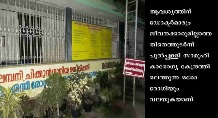 ദിവസവും നൂറുകണക്കിന് രോഗികള്‍ എത്തുന്ന പുല്‍പ്പള്ളി സാമൂഹികാരോഗ്യകേന്ദ്രത്തില്‍ കഴിഞ്ഞ ദിവസങ്ങളില്‍ പരിശോധനക്കുണ്ടായിരുന്നത് രണ്ട് ഡോക്ടര്‍മാര്‍. നാല് ഡോക്ടര്‍മാര്‍ വേണ്ട സ്ഥാനത്താണ് രണ്ട് ഡോക്ടര്‍മാര്‍ മാത്രം പരിശോധനയ്ക്കുണ്ടായിരുന്നത്. ഫാര്‍മസിയിലെ സ്ഥിതിയും വ്യത്യസ്ഥമാല്ല കഴിഞ്ഞ ദിവസങ്ങളില്‍ ഒരു ജീവനക്കാരന്‍ മാത്രമാണ് ഇവിടെ ഉണ്ടായിരുന്നതെന്ന് നാട്ടുകാര്‍ പറയുന്നു. പാടിച്ചിറ കടുംബാരാഗ്യകേന്ദ്രത്തില്‍ മതിയായ ജീവിക്കാരിലാത്തതിനാല്‍ മുള്ളന്‍കൊല്ലി ഗ്രാമപ്പഞ്ചായത്തിലുള്ളവരടക്കം ആശ്രയിക്കുന്നത് പുല്‍പ്പള്ളി സാമൂഹികാരോഗ്യ കേന്ദ്രത്തൊയണ്.