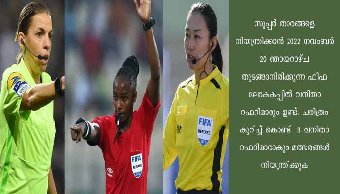 ഖത്തർ: ഫുട്ബോൾ ഗ്രൗണ്ടിൽ അവസാന വാക്ക് റഫറിയുടേതാണ്. സൂപ്പർ താരങ്ങളെ നിയന്ത്രിക്കാൻ 2022 നവംബർ 20 ഞായറാഴ്ച തുടങ്ങാനിരിക്കുന്ന ഫിഫ ലോകകപ്പിൽ വനിതാ റഫറിമാരും ഉണ്ട്. ചരിത്രം കുറിച്ച് കൊണ്ട് 3 വനിതാ റഫറിമാരാകും മത്സരങ്ങൾ നിയന്ത്രിക്കുക.