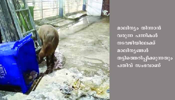 മാളികപ്പുറം ക്ഷേത്രത്തിനു സമീപവും പ്ലാസ്റ്റിക് മാലിന്യങ്ങള് അടക്കം കുന്നുകൂടുന്നുണ്ട്. ഇവിടെ പന്നികള് തമ്പടിക്കുന്നത് ഭക്തര്ക്ക് ഭീഷണിയാവുന്നുണ്ട്. മാലിന്യം തിന്നാന് വരുന്ന പന്നികള് നടവഴിയിലേക്ക് മാലിന്യങ്ങള് തട്ടിത്തെറിപ്പിക്കുന്നതും പതിവ് സംഭവാണ്. മാലിന്യം കൃത്യസമയത്ത് തന്നെ നീക്കാന് തയ്യാറായാല് നിലവിലെ പ്രശ്നങ്ങള് ഒരു പരിധിവരെ പരിഹരിക്കാന് സാധിക്കും. എന്നാല് ഇത് ചെയ്യാന് തയ്യാറാവാത്തതാണ് ഇപ്പോഴത്തെ പ്രശ്നങ്ങള്ക്ക് പ്രധാന കാരണം.