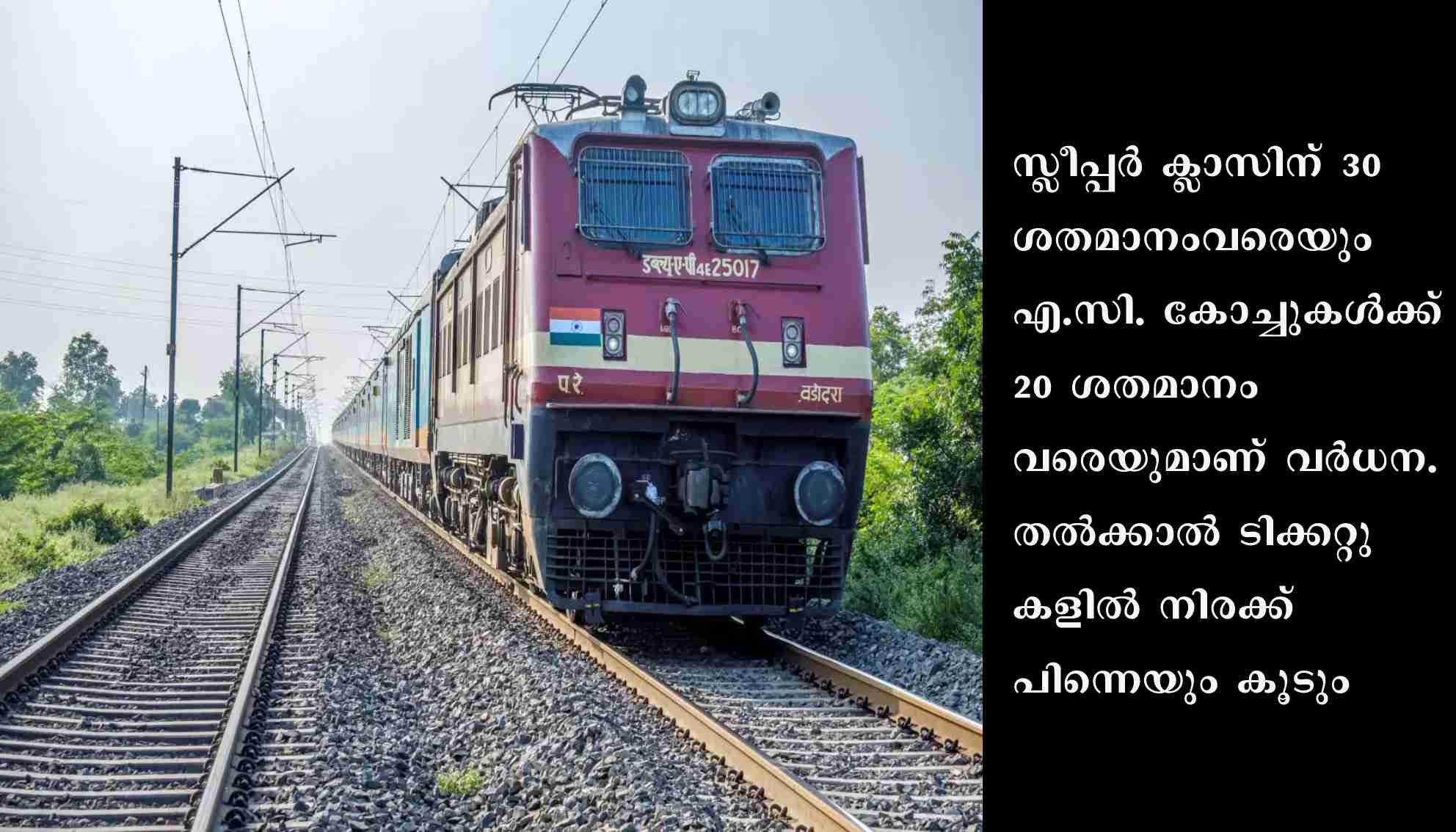 സ്ലീപ്പര് ക്ലാസിന് 30 ശതമാനംവരെയും എ.സി. കോച്ചുകള്ക്ക് 20 ശതമാനം വരെയുമാണ് വര്ധന. തല്ക്കാല് ടിക്കറ്റുകളില് നിരക്ക് പിന്നെയും കൂടും. ജനറല് ക്ലാസിലും വര്ധനയുണ്ട്. കെ.എസ്.ആര്.ടി.സി. പമ്പാ സപെ്ഷല് ബസുകളില് കൂടിയ നിരക്കാണ് കുറേ കൊല്ലങ്ങളായി ഈടാക്കുന്നത്.