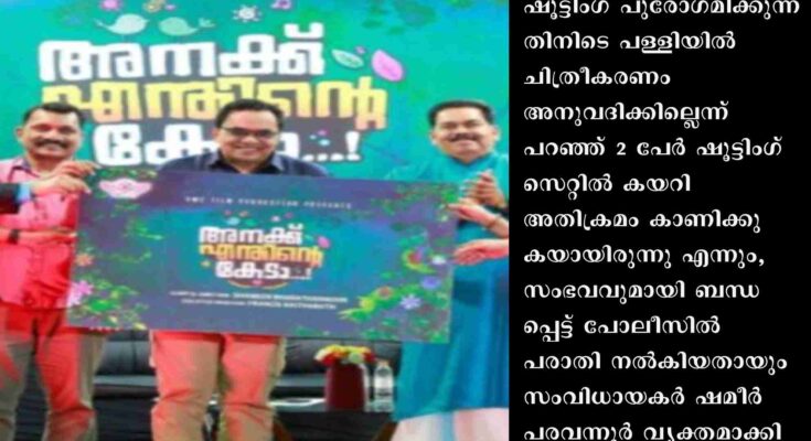 ഷമീര് പരവന്നൂര് സംവിധാനം ചെയ്യുന്ന ‘അനക്ക് എന്തിന്റെ കേടാ’ എന്ന സിനിമയുടെ സെറ്റിലാണ് അതിക്രമം ഉണ്ടായത്. സംഭവത്തെ തുടര്ന്ന് സിനിമയുടെചിത്രീകരണം നിര്ത്തി വെച്ചു.ഷൂട്ടിംഗ് പുരോഗമിക്കുന്നതിനിടെ പള്ളിയില് ചിത്രീകരണം അനുവദിക്കില്ലെന്ന് പറഞ്ഞ് 2 പേര് ഷൂട്ടിംഗ് സെറ്റില് കയറി അതിക്രമം കാണിക്കുകയായിരുന്നു എന്നും, സംഭവവുമായി ബന്ധപ്പെട്ട് പോലീസില് പരാതി നല്കിയതായും സംവിധായകര് ഷമീര് പരവന്നൂര് വ്യക്തമാക്കി. സംവിധായകന്റെ പരാതിയില് കേസെടുത്ത് അന്വേഷണം ആരംഭിച്ചതായി മുക്കം പോലീസ് അറിയിച്ചു.