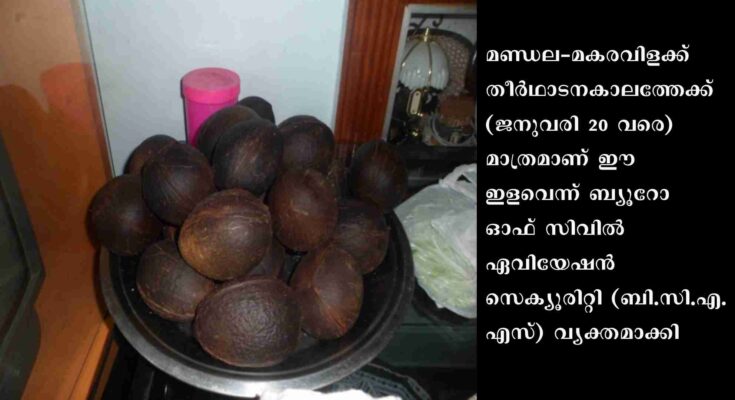 ഇരുമുടിക്കെട്ടില്‍ നെയ്‌ത്തേങ്ങ കൊണ്ടുപോകുന്ന ആചാരം പരിഗണിച്ചാണ് ബി.സി.എ.എസിന്റെ തീരുമാനം. എന്നാല്‍, ഇളവ് നല്‍കുന്ന സാഹചര്യത്തില്‍ എക്‌സ്‌റേ, സ്‌ഫോടകവസ്തു പരിശോധനകള്‍ കൂടുതല്‍ ശക്തമാക്കും. ദേഹപരിശോധനയുമുണ്ടാകും. തീപിടിക്കുന്ന വിഭാഗത്തിലായതിനാല്‍ വിമാനത്തില്‍ തേങ്ങ കൊണ്ടുപോകാന്‍ നിലവില്‍ വിലക്കുണ്ട്.