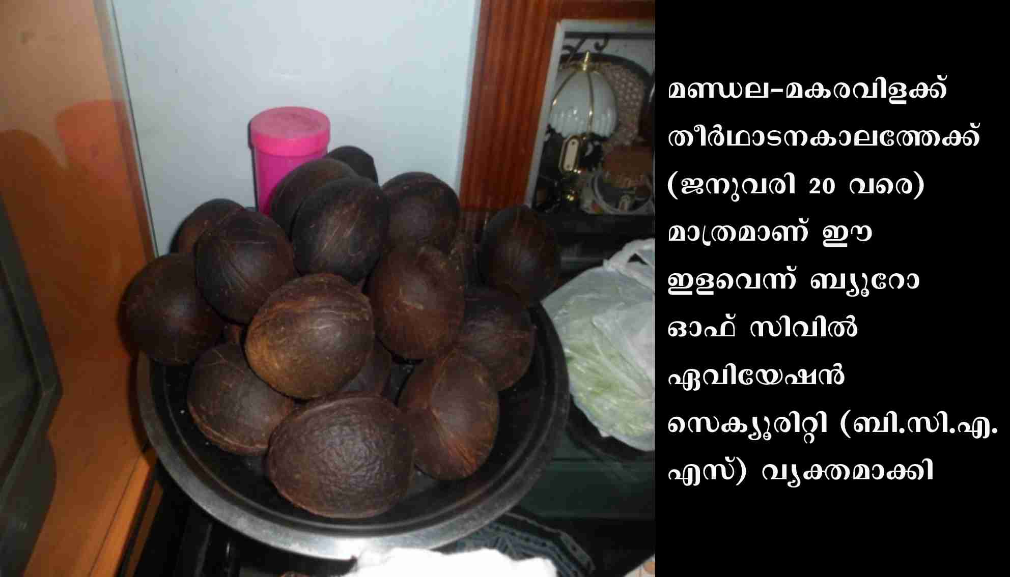 ശബരിമല തീര്‍ഥാടകര്‍ക്ക് വിമാനത്തില്‍ നെയ്‌ത്തേങ്ങ കൊണ്ടുപോകാന്‍ അനുമതി