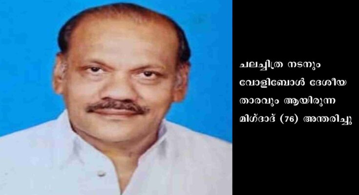 തിരുവനന്തപുരം: ചലച്ചിത്ര നടനും വോളിബോള് ദേശീയ താരവും ആയിരുന്ന മിഗ്ദാദ് (76) അന്തരിച്ചു. പക്ഷാഘാതത്തെത്തുടര്ന്നു ചികിത്സയിലിരിക്കെ തലസ്ഥാനത്തെ സ്വകാര്യ ആശുപത്രിയില് 23/11/2022 ഉച്ചയ്ക്കായിരുന്നു അന്ത്യം. കബറടക്കം 24/11/2022 രാവിലെ 11.30 നു കൊല്ലം പോളയത്തോട് ജുമാ മസ്ജിദില്. ഭാര്യ: റഫീക്ക മിഗ്ദാദ്. മക്കള്: മിറ മിഗ്ദാദ്, റമ്മി മിഗ്ദാദ്. മരുമക്കള്: സുനിത് സിയാ, ഷിബില് മുഹമ്മദ്.