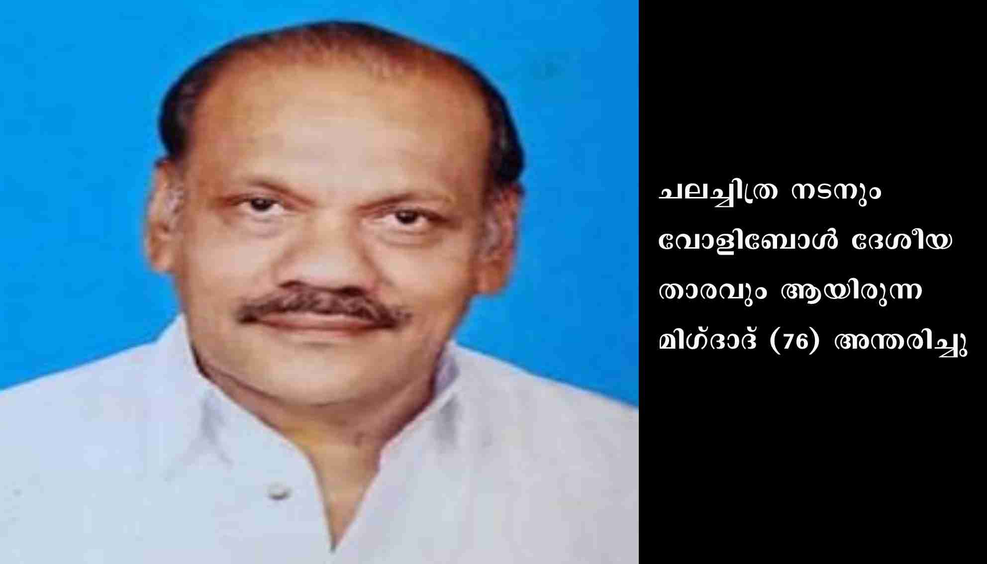 തിരുവനന്തപുരം: ചലച്ചിത്ര നടനും വോളിബോള് ദേശീയ താരവും ആയിരുന്ന മിഗ്ദാദ് (76) അന്തരിച്ചു. പക്ഷാഘാതത്തെത്തുടര്ന്നു ചികിത്സയിലിരിക്കെ തലസ്ഥാനത്തെ സ്വകാര്യ ആശുപത്രിയില് 23/11/2022 ഉച്ചയ്ക്കായിരുന്നു അന്ത്യം. കബറടക്കം 24/11/2022 രാവിലെ 11.30 നു കൊല്ലം പോളയത്തോട് ജുമാ മസ്ജിദില്. ഭാര്യ: റഫീക്ക മിഗ്ദാദ്. മക്കള്: മിറ മിഗ്ദാദ്, റമ്മി മിഗ്ദാദ്. മരുമക്കള്: സുനിത് സിയാ, ഷിബില് മുഹമ്മദ്.
