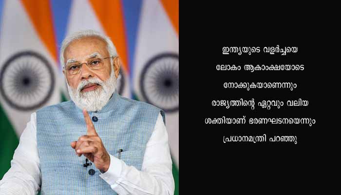 ഭരണഘടന ദിനത്തിൽ മുംബൈ ഭീകരാക്രമണം അനുസ്മരിച്ചായിരുന്നു പ്രധാനമന്ത്രിയുടെ പ്രസംഗം. ഇന്ത്യയുടെ വളർച്ചയെ ലോകം ആകാംക്ഷയോടെ നോക്കുകയാണെന്നും രാജ്യത്തിന്റെ ഏറ്റവും വലിയ ശക്തിയാണ് ഭരണഘടനയെന്നും പ്രധാനമന്ത്രി പറഞ്ഞു.