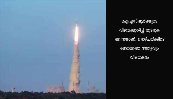 ഐഎസ്ആർഒയുടെ വിജയക്കുതിപ്പ് തുടരുക തന്നെയാണ്. ഒരാഴ്ചയ്ക്കിടെ രണ്ടാമത്തെ ദൗത്യവും വിജയകരം. പിഎസ്എൽവി സി 54 വഹിച്ച, ഭൗമനിരീക്ഷണ ഉപഗ്രഹ ശ്രേണിയിലെ ഓഷ്യൻസാറ്റ് മൂന്ന് വിക്ഷേപണം കഴിഞ്ഞ് 17 ആമത്തെ മിനിറ്റിൽ ഭ്രമണപഥത്തിലെത്തിച്ചു. ഏറെ സങ്കീർണമായതും കൂടുതൽ ദൈർഘ്യമേറിയതുമായ ദൗത്യത്തിന്റെ വിജയം ഏറെ അഭിമാനകരം.