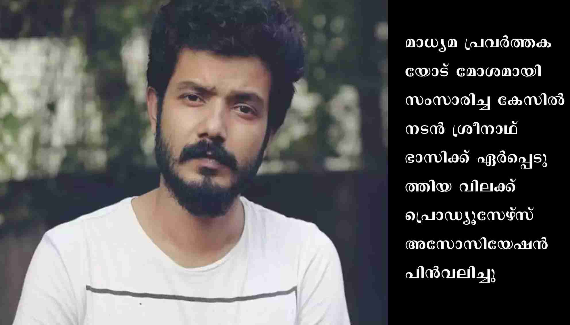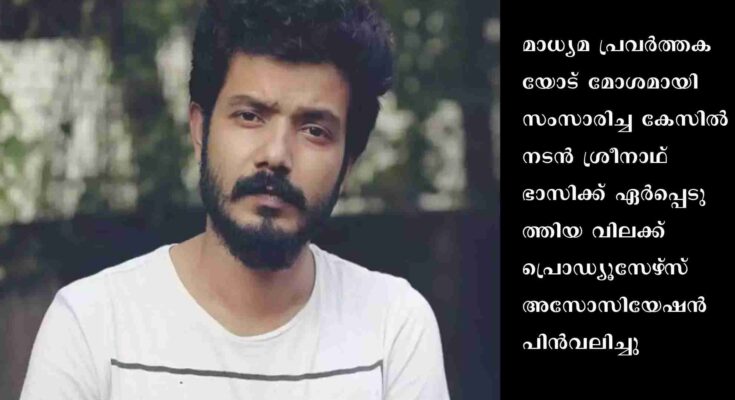 നടന് ശ്രീനാഥ് ഭാസിക്ക് ഏര്പ്പെടുത്തിയ വിലക്ക് പ്രൊഡ്യൂസേഴ്സ് അസോസിയേഷന് പിന്വലിച്ചു