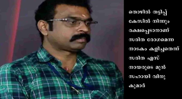 തിരുവനന്തപുരം: തൊഴിൽ തട്ടിപ്പ് കേസിൽ നിന്നും രക്ഷപ്പെടാനാണ് സരിത രോഗമെന്ന നാടകം കളിച്ചതെന്ന് സരിത എസ് നായരുടെ മുൻ സഹായി വിനു കുമാർ. മുടി കൊഴിഞ്ഞതല്ല, ബാർബർ ഷോപ്പിൽ കൊണ്ടുപോയി താൻ മൊട്ടയടിപ്പിച്ചതാണെന്നും ,ന്യൂറോ സംബന്ധമായ അസുഖം മാത്രമാണ് സരിതയ്ക്കുള്ളതെന്നും വിനു കുമാർ പറഞ്ഞു.