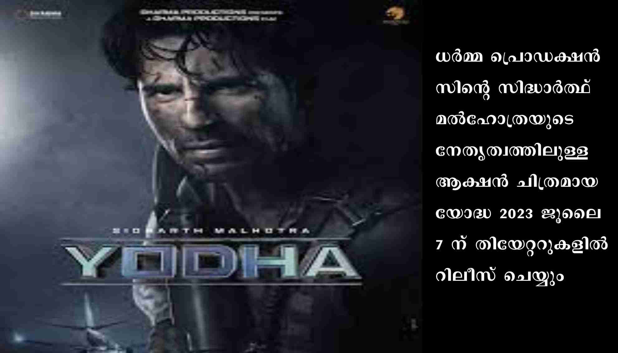 നവാഗതരായ പുഷ്കര് ഓജയും സാഗര് ആംബ്രെയും ചേര്ന്ന് സംവിധാനം ചെയ്ത ചിത്രമാണ് യോദ്ധ. ധർമ്മ പ്രൊഡക്ഷന്സിന്റെ സിദ്ധാര്ത്ഥ് മല്ഹോത്രയുടെ നേതൃത്വത്തിലുള്ള ആക്ഷന് ചിത്രമായ യോദ്ധ 2023 ജൂലൈ 7 ന് തിയേറ്ററുകളില് റിലീസ് ചെയ്യും.