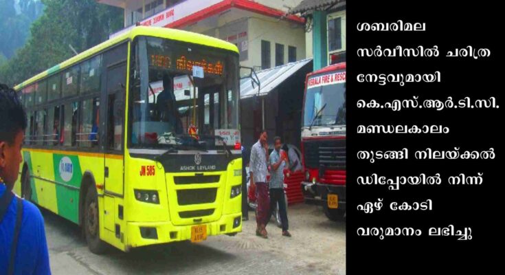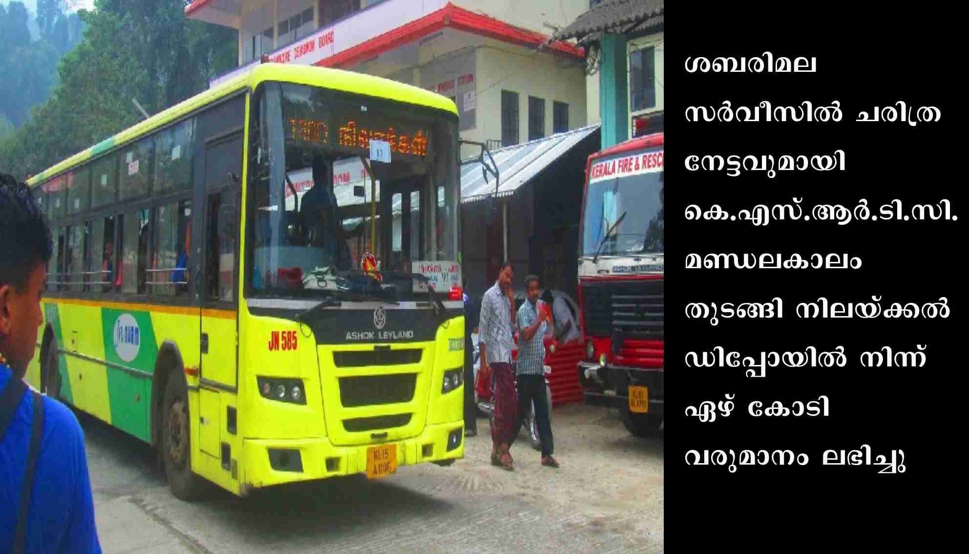 പത്തനംതിട്ട: ശബരിമല സർവീസിൽ ചരിത്ര നേട്ടവുമായി കെ.എസ്.ആർ.ടി.സി. മണ്ഡലകാലം തുടങ്ങി നിലയ്ക്കൽ ഡിപ്പോയിൽ നിന്ന് ഏഴ് കോടി വരുമാനം ലഭിച്ചു. മുൻ വർഷങ്ങളിൽ നിന്നും വ്യത്യസ്തമായി കണ്ടക്ടർ ഇല്ലാത്ത സർവീസുകളാണ് നിലയ്ക്കൽ നിന്നും പമ്പയിലേക്കും തിരിച്ചും നടത്തുന്നത്.