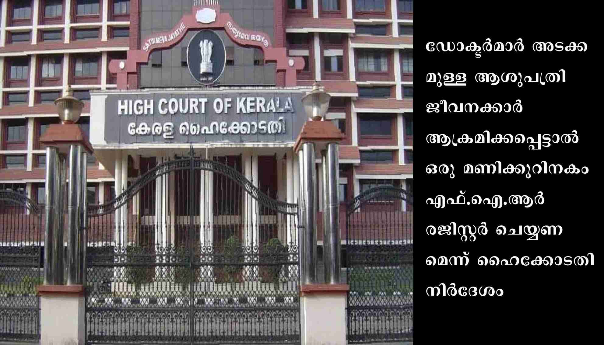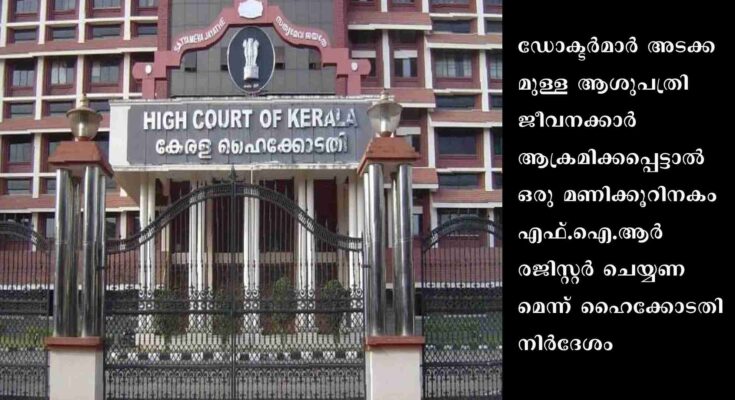കൊച്ചി: ഡോക്ടര്മാര് അടക്കമുള്ള ആശുപത്രി ജീവനക്കാര് ആക്രമിക്കപ്പെട്ടാല് ഒരു മണിക്കൂറിനകം എഫ്.ഐ.ആര് രജിസ്റ്റര് ചെയ്യണമെന്ന് ഹൈക്കോടതി നിര്ദേശം.