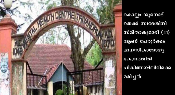 . പോസ്റ്റുമാർട്ടത്തിൽ തലയ്ക്ക് ഗുരുതര പരുക്കേറ്റതായി സ്ഥിരീകരിച്ചു. മെഡിക്കൽ കോളേജ് ആശുപത്രിയിൽ എത്തും മുൻപേ മരണം സംഭവിച്ചിരുന്നു. ഇതിനു മുൻപ് രണ്ടു തവണ സ്മിതാകുമാരി പേരൂർക്കടയിൽ ചികിത്സ തേടിയിട്ടുണ്ട്. മരണകാരണത്തെ കുറിച്ച് കൃത്യമായ നിഗമനത്തിലെത്താൻ ഫൊറൻസിക് സർജൻ സംഭവസ്ഥലം സന്ദർശിക്കും. പേരൂർക്കട പൊലീസിനാണ് അന്വേഷണ ചുമതല. മാനസികാരോഗ്യ കേന്ദ്രത്തിൽ ജീവനക്കാരുടെ കുറവ് കാരണം രോഗികൾക്ക് വേണ്ട പരിചരണം കിട്ടുന്നില്ലെന്ന ആക്ഷേപം ഇതിനോടകം ഉയർന്നിരുന്നു. കഴിഞ്ഞ ശനിയാഴ്ച രാവിലെ കുളിപ്പിക്കാൻ ഇറക്കുന്നതിനിടെ രോഗി മതിൽ ചാടി രക്ഷപ്പെട്ടാൻ ശ്രമിച്ചു. ഏറെ പണിപ്പെട്ടാണ് ജീവനക്കാർ പിടികൂടി സെല്ലിൽ അടച്ചത്.