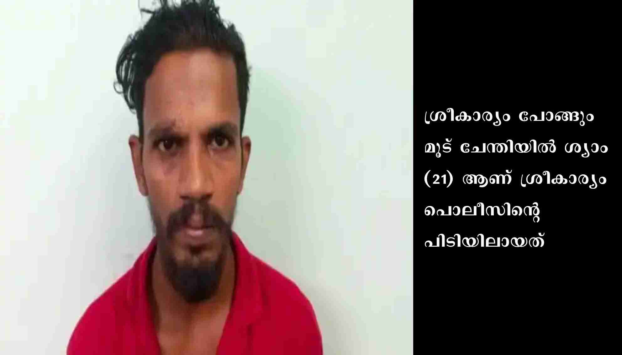 സംഭവ സമയം വീട്ടിൽ ആരും ഇല്ലായിരുന്നു. പൈപ്പുകൾ മോഷ്ടിക്കുന്നതിന് വേണ്ടി ശ്യാം വീട്ടിനുള്ളിലെ മുഴുവൻ സാനിട്ടറി സാധനങ്ങളും അടിച്ച് പൊട്ടിച്ച് നശിപ്പിച്ചു. വലിയ ശബ്ദം കേട്ട നാട്ടുകാർ പൊലീസിൽ വിവരം അറിയിച്ചതിനെ തുടർന്ന് ശ്രീകാര്യം പൊലീസ് എത്തിയപ്പോൾ ശ്യാം മോഷ്ടിച്ച സാധനങ്ങൾ ഓട്ടോയിൽ കയറ്റി രക്ഷപ്പെടാൻ ഒരുങ്ങുകയായിരുന്നു. തുടർന്ന് നാട്ടുകാരുടെ സഹായത്തോടെ ശ്രീകാര്യം പൊലീസ് പ്രതിയെ പിടികൂടുകയായിരുന്നു.