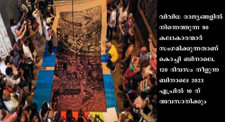 കൊച്ചി: കൊച്ചി മുസരീസ് ബിനാലക്ക് ഇനി പത്തുദിവസം മാത്രം. വിവിധ രാജ്യങ്ങളിൽ നിന്നെത്തുന്ന 90 കലാകാരന്മാർ സംഗമിക്കുന്നതാണ് കൊച്ചി ബിനാലെ. 120 ദിവസം നീളുന്ന ബിനാലെ 2023 ഏപ്രിൽ 10 ന് അവസാനിക്കും.