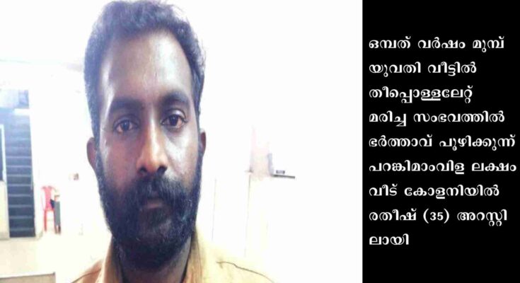 തിരുവനന്തപുരം: ഒമ്പത് വർഷം മുമ്പ് യുവതി വീട്ടിൽ തീപ്പൊള്ളലേറ്റ് മരിച്ച സംഭവത്തിൽ ഭർത്താവ് പൂഴിക്കുന്ന് പറങ്കിമാംവിള ലക്ഷംവീട് കോളനിയിൽ രതീഷ് (35) അറസ്റ്റിലായി. നേമം സ്വദേശിയായ അശ്വതിയെ ഭർത്താവ് രതീഷ് മണ്ണെണ്ണയൊഴിച്ച് കത്തിക്കുകയായിരുന്നു വെന്ന് ക്രൈംബ്രാഞ്ച് അന്വേഷണത്തിൽ വ്യക്തമായി. നെയ്യാറ്റിൻകര ജുഡിഷ്യൽ ഫസ്റ്റ്ക്ളാസ് മജിസ്ട്രേട്ട് കോടതിയിൽ ഹാജരാക്കിയ പ്രതിയെ റിമാൻഡ് ചെയ്തു.