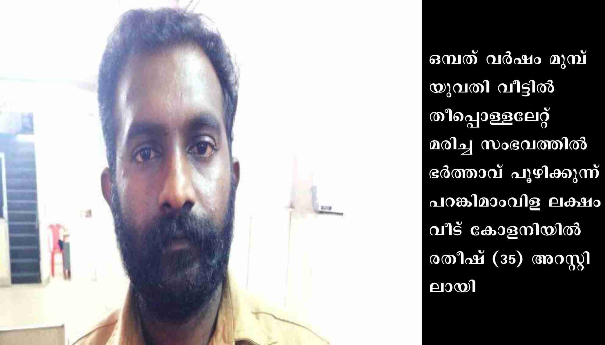 തിരുവനന്തപുരം: ഒമ്പത് വർഷം മുമ്പ് യുവതി വീട്ടിൽ തീപ്പൊള്ളലേറ്റ് മരിച്ച സംഭവത്തിൽ ഭർത്താവ് പൂഴിക്കുന്ന് പറങ്കിമാംവിള ലക്ഷംവീട് കോളനിയിൽ രതീഷ് (35) അറസ്റ്റിലായി. നേമം സ്വദേശിയായ അശ്വതിയെ ഭർത്താവ് രതീഷ് മണ്ണെണ്ണയൊഴിച്ച് കത്തിക്കുകയായിരുന്നു വെന്ന് ക്രൈംബ്രാഞ്ച് അന്വേഷണത്തിൽ വ്യക്തമായി. നെയ്യാറ്റിൻകര ജുഡിഷ്യൽ ഫസ്റ്റ്ക്ളാസ് മജിസ്ട്രേട്ട് കോടതിയിൽ ഹാജരാക്കിയ പ്രതിയെ റിമാൻഡ് ചെയ്തു.