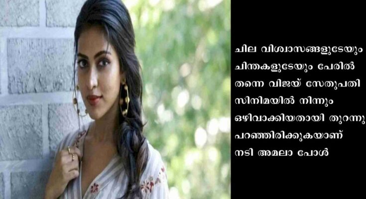ചില വിശ്വാസങ്ങളുടേയും ചിന്തകളുടേയും പേരില് തന്നെ വിജയ് സേതുപതി സിനിമയില് നിന്നും ഒഴിവാക്കിയതായി തുറന്നു പറഞ്ഞിരിക്കുകയാണ് നടി അമലാ പോള്.ബോളിവുഡില് താന് ഓഡീഷന് ചെയ്തിട്ടുണ്ടെന്നും അവിടെ കാസ്റ്റിങ് ഏജന്സിയാണ് താരങ്ങളെ സിനിമയിലേക്ക് തെരഞ്ഞെടുക്കുന്നതെന്നും അമലാ പോള് പറഞ്ഞു.എന്ത് സംഭവിക്കുന്നതും ഒരു നല്ലതിന് വേണ്ടിയാണെന്നാണ് താന് മനസിലാക്കുന്നതെന്നും താരം കൂട്ടിച്ചേര്ത്തു.