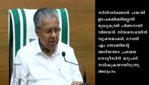 തിരുവനന്തപുരം: സില്വര്ലൈന് പദ്ധതി ഉപേക്ഷിക്കില്ലെന്ന് മുഖ്യമന്ത്രി പിണറായി വിജയന് നിയമസഭയില് വ്യക്തമാക്കി. റോജി എം ജോണിന്റെ അടിയന്തര പ്രമേയ നോട്ടീസിന് മറുപടി നല്കുകയായിരുന്നു അദ്ദേഹം. ‘കേരളത്തിന്റെ പശ്ചാത്തലസൗകര്യ വികസനത്തില് വന്കുതിപ്പുണ്ടാക്കുന്ന ഒന്നായാണ് വിഭാവനം ചെയ്തിട്ടുള്ളത്. ഇത് സമ്പദ്ഘടനയ്ക്കും വ്യവസായാന്തരീക്ഷത്തിനും സാമൂഹിക വളര്ച്ചയ്ക്കും നല്കുന്ന സംഭാവന ഒട്ടുംതന്നെ ചെറുതല്ല. പദ്ധതി മരവിപ്പിച്ചുവെന്നത് വസ്തുതാവിരുദ്ധമാണ്. പദ്ധതിയുടെ ഡി.പി.ആര് അനുമതിക്കായി കേന്ദ്രസര്ക്കാരിന് സമര്പ്പിക്കുകയും റെയില്വേ മന്ത്രാലയം ആരാഞ്ഞ വിവരങ്ങള്ക്ക് സ്പഷ്ടീകരണം നല്കുകയും ചെയ്തിട്ടുണ്ട്. ഡി.പി.ആര് റെയില്വേമന്ത്രാലയത്തിന്റെ പരിഗണനയിലാണ്.