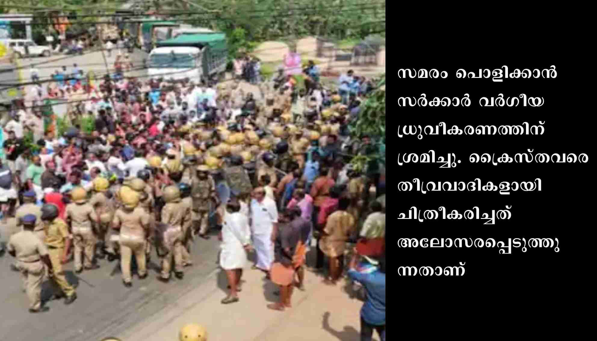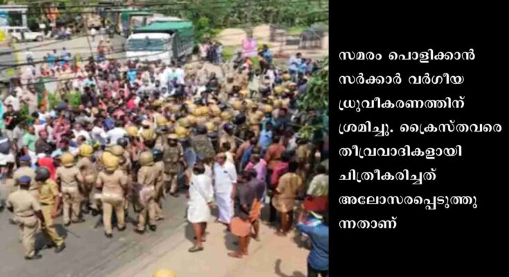 തിരുവനന്തപുരം : വിഴിഞ്ഞം സമരം ഒത്തുതീർപ്പായതിന് പിന്നാലെ സംസ്ഥാന സർക്കാരിനെതിരെ എറണാകുളം അങ്കമാലി അതിരൂപത മുഖപത്രം സത്യദീപം. മത്സ്യതൊഴിലാളികൾക്ക് ക്രൈസ്തവ സഭ പിന്തുണ കൊടുത്തപ്പോൾ കമ്യൂണിസ്റ്റുകാരാൽ സഭ ആക്രമിക്കപ്പെട്ടുവെന്നാണ് വിമർശനം. സമരം പൊളിക്കാൻ സർക്കാർ വർഗീയ ധ്രുവീകരണത്തിന് ശ്രമിച്ചു. ക്രൈസ്തവരെ തീവ്രവാദികളായി ചിത്രീകരിച്ചത് അലോസരപ്പെടുത്തുന്നതാണ്.