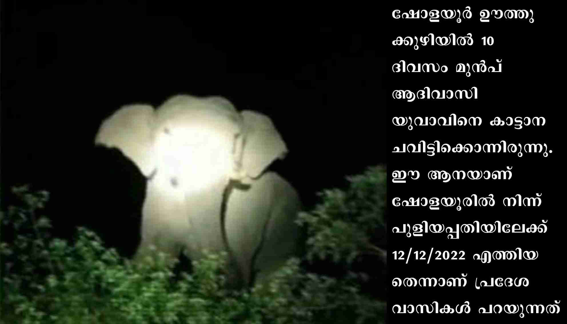 ഷോളയൂർ ഊത്തുക്കുഴിയിൽ 10 ദിവസം മുൻപ് ആദിവാസി യുവാവിനെ കാട്ടാന ചവിട്ടിക്കൊന്നിരുന്നു. ഈ ആനയാണ് ഷോളയൂരിൽ നിന്ന് പുളിയപ്പതിയിലേക്ക് 12/12/2022 എത്തിയതെന്നാണ് പ്രദേശവാസികൾ പറയുന്നത്.