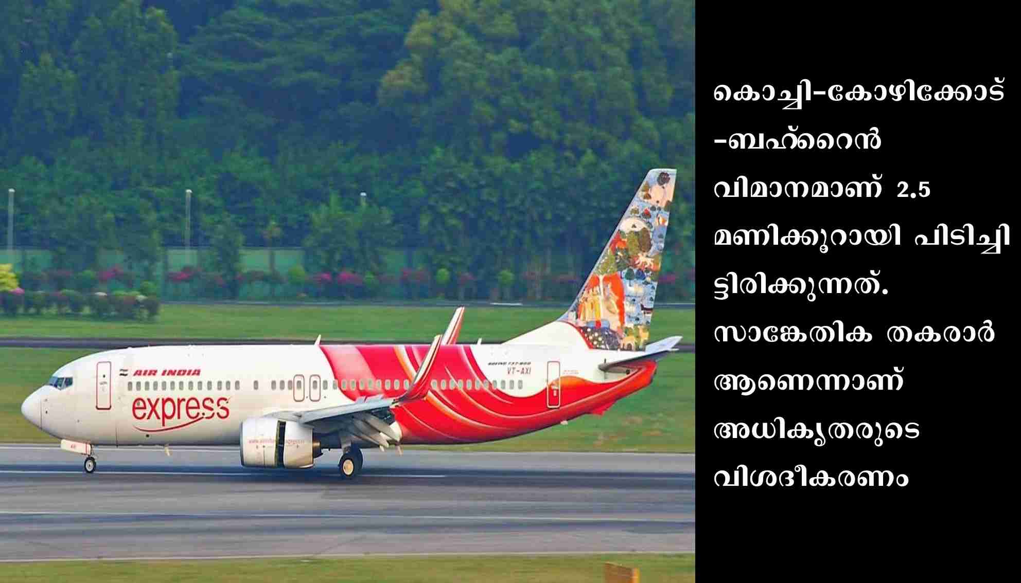 കോഴിക്കോട്: കരിപ്പൂരില് എയര് ഇന്ത്യ എക്സ്പ്രസ് വിമാനം മണിക്കൂറുകളായി പിടിച്ചിട്ട നിലയില്. കൊച്ചി-കോഴിക്കോട്-ബഹ്റൈന് വിമാനമാണ് 2.5 മണിക്കൂറായി പിടിച്ചിട്ടിരിക്കുന്നത്. സാങ്കേതിക തകരാര് ആണെന്നാണ് അധികൃതരുടെ വിശദീകരണം.
