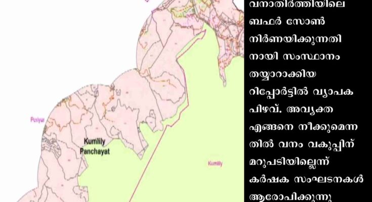 കോഴിക്കോട്: വനാതിർത്തിയിലെ ബഫർ സോൺ നിർണയിക്കുന്നതിനായി സംസ്ഥാനം തയ്യാറാക്കിയ റിപ്പോർട്ടിൽ വ്യാപക പിഴവ്. അവ്യക്ത എങ്ങനെ നീക്കുമെന്നതിൽ വനം വകുപ്പിന് മറുപടിയില്ലെന്ന് കർഷക സംഘടനകൾ ആരോപിക്കുന്നു. സംസ്ഥാന റിമോട്ട് സെൻസിംഗ് എൻവയോൺമെന്റ് സെന്റർ തയ്യാറാക്കിയ ഉപഗ്രഹ സർവേ റിപ്പോർട്ടും, ഭൂപടവും അപൂർണമെന്നാണ് ആക്ഷേപം. വിട്ടുപോയ വിവരങ്ങൾ കൂട്ടിച്ചേർക്കാൻ നിർദ്ദേശിച്ചുവെന്ന വനം വകുപ്പ് വാദത്തിൽ ആത്മാർത്ഥതയില്ലെന്നാണ് കർഷക സംഘടനകളുടെ പരാതി.